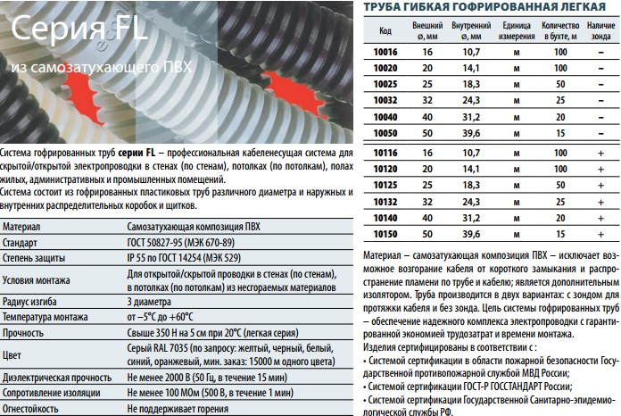 10016 Труба ПВХ гофрированная легкая диаметр 16 мм Ecoplast
