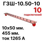 ГЗШ-10.50-10 Медная шина 10х50 мм, 10 подключений, 455 мм, ток 1265 А