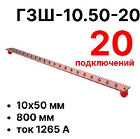 ГЗШ-10.50-20 Медная шина 10х50 мм, 20 подключений, 800 мм, ток 1265 А