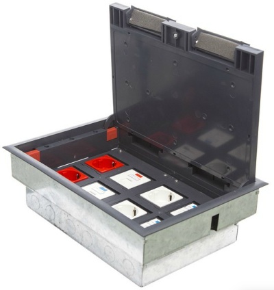 Главная / Каталог / Колонны и люки напольные / Люки для розеток в пол и в стол / Напольный люк для розеток / Люк напольный на 8 модулей (8 розеток 45х45) / 70083 (70080+70180) сталь Экопласт LUK/8 Люк в пол