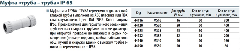 44116 MS16 Муфта "труба-труба" D16мм цвет серый (1уп = 50шт)